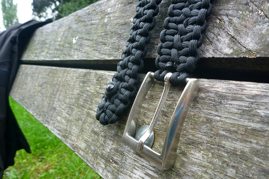 Izrada predmeta od paracorda zahtjeva malo vještine, dobre instrukcije te, u mojem slučaju, nekoliko sezona vaše omiljene serije koje ćete gledati  dok ruke rade svoj posao. Izrada narukvice je ono što preporučam prije izrade samog pojasa. Jednom kad odaberete vez koji želite (najpopularniji je takozvani Cobra iliti Salomon Bar) narukvicu možete napraviti za dvadesetak minuta. Moj odabir je bio upravo Cobra vez koji se jednostavno nauči. Pojas koji sam napravio sastoji se od dva isprepletena Cobra veza  koji zajedno čine pojas širine 3 do 3,5 centimetara. Važno je napomenuti da vezanje ovakvog pojasa uključuje pažljivo gradiranje napetosti zbog koje, ako stisnete čvor ko manijak, možete izgubiti funkcionalnost i savitljivost pojasa. Ovako izgleda završeni pojas: