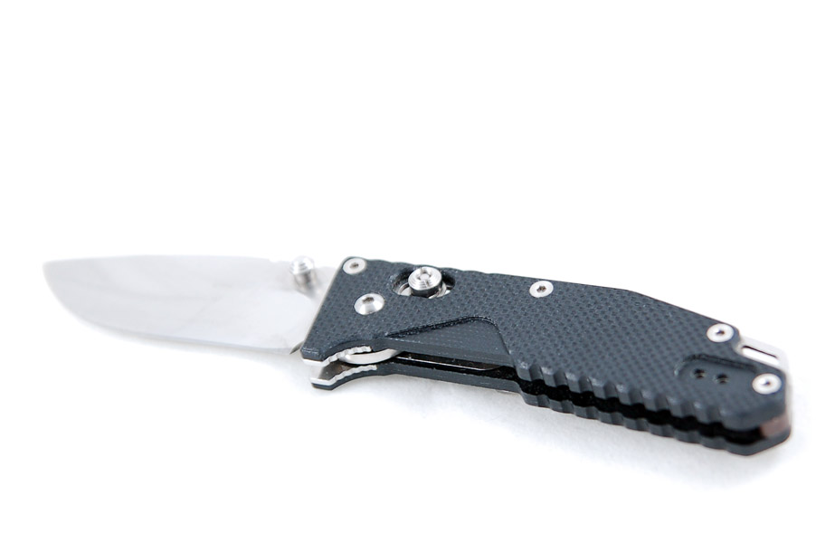 Sanrenmu GB-763 je malen nož, veličinom idealan za EDC u urbanim sredinama gdje će većinu vremena rezati papire, konopce i voće. Snašao bi se on i u nekim zahtjevnijim zadaćama, ali za ovo je dizajniran. Duljina sklopljenog noža je 93 mm, rasklopljenog 156 mm, a sama oštrica je duga 65 mm ili 2,5 inča – za one koji su navikli na američke mjere. Masa 763-ojke je odličnih 58 grama što se u džepu praktički ni ne osjeti. Nož je napravljen od poznatog nam kineskog čelika 8Cr13MoV što je navedeno na oštrici. Prema našem mišljenju radi se o vrlo dobrom materijalu koji solidno drži oštricu, lako se oštri i pristojno odbija hrđu. U EDC funkciji i za ovu cijenu teško je dobiti bolje. Oblik noža je dobro pogođen funkciji, radi se o drop pointu sa izraženim trbuhom koji maksimizira duljinu naoštrenog dijela. Hollow grind brušenje oštrice je također dobar izbor za nož ove namjene i veličine gdje je važnije da nož reže s lakoćom i precizno nego da bude čvrst i spreman izdržati velika opterećenja. Zarezi na gornjoj strani oštrice daju više nego solidno uporište za palac zatreba li vam snažniji pritisak u smjeru rezanja.