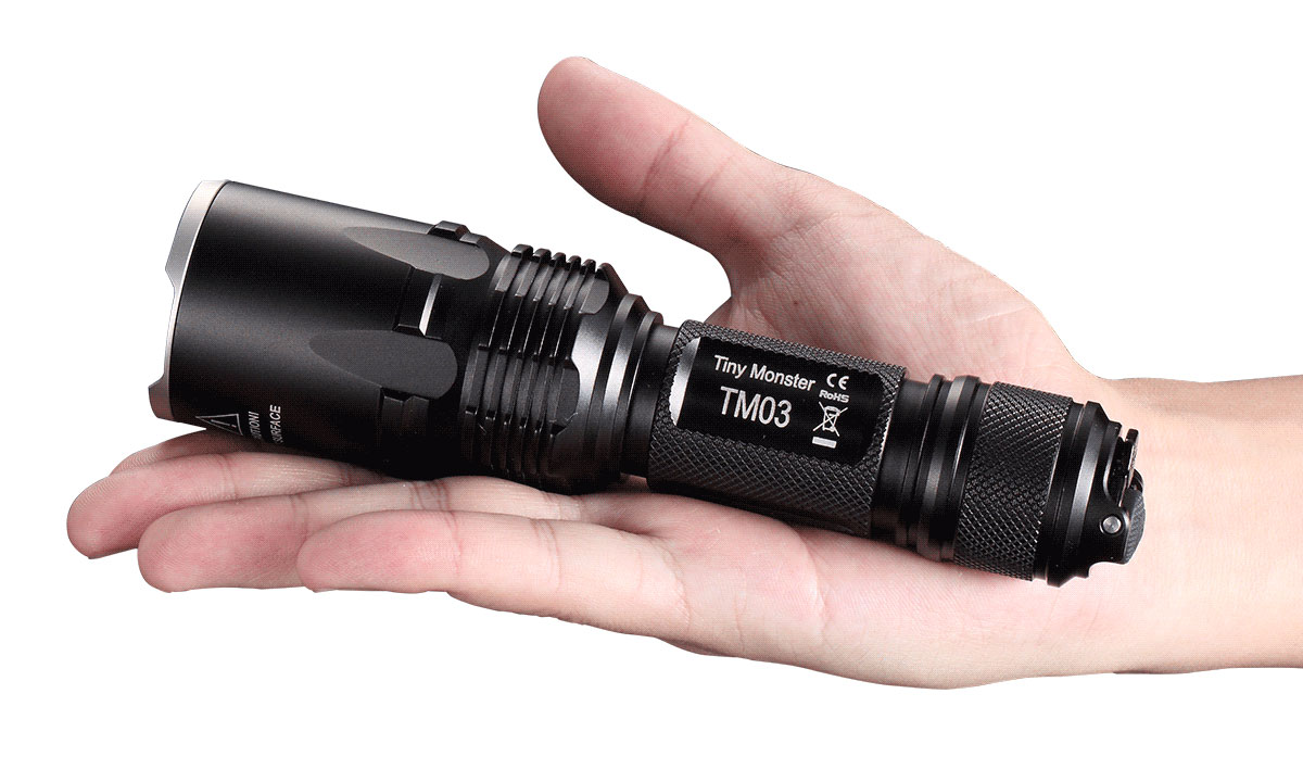 Nitecore je uspio napraviti ručnu svjetiljku standardnih dimenzije koja može isporučiti 2800 lumena svjetla. Kineski proizvođač je tu snagu dobio korištenjem kombinacije CREE LED emitera XHP70 i 18650 baterije. Na žalost ovakvu snagu nemoguće je dobiti iz standardne 18650 baterije pa Nitecore proizvodi specijalnu 18650 bateriju baš za TM03 svjetiljku. Baterija 18650 formata na sebi ima natpis da je napravljena za TM03 svjetiljku i samo za baterija dopušta dovoljno brzo pražnjenje potrebno za proizvesti svjetlo snage 2800 lumena. Također treba znati da TM03 može samo jedno kraće vrijeme svijetliti snagom od 2800 lumena. Snažno svjetlo zamišljeno je kao sredstvo za samoobranu ili za napad onima kojima je to posao (policija, vojska).